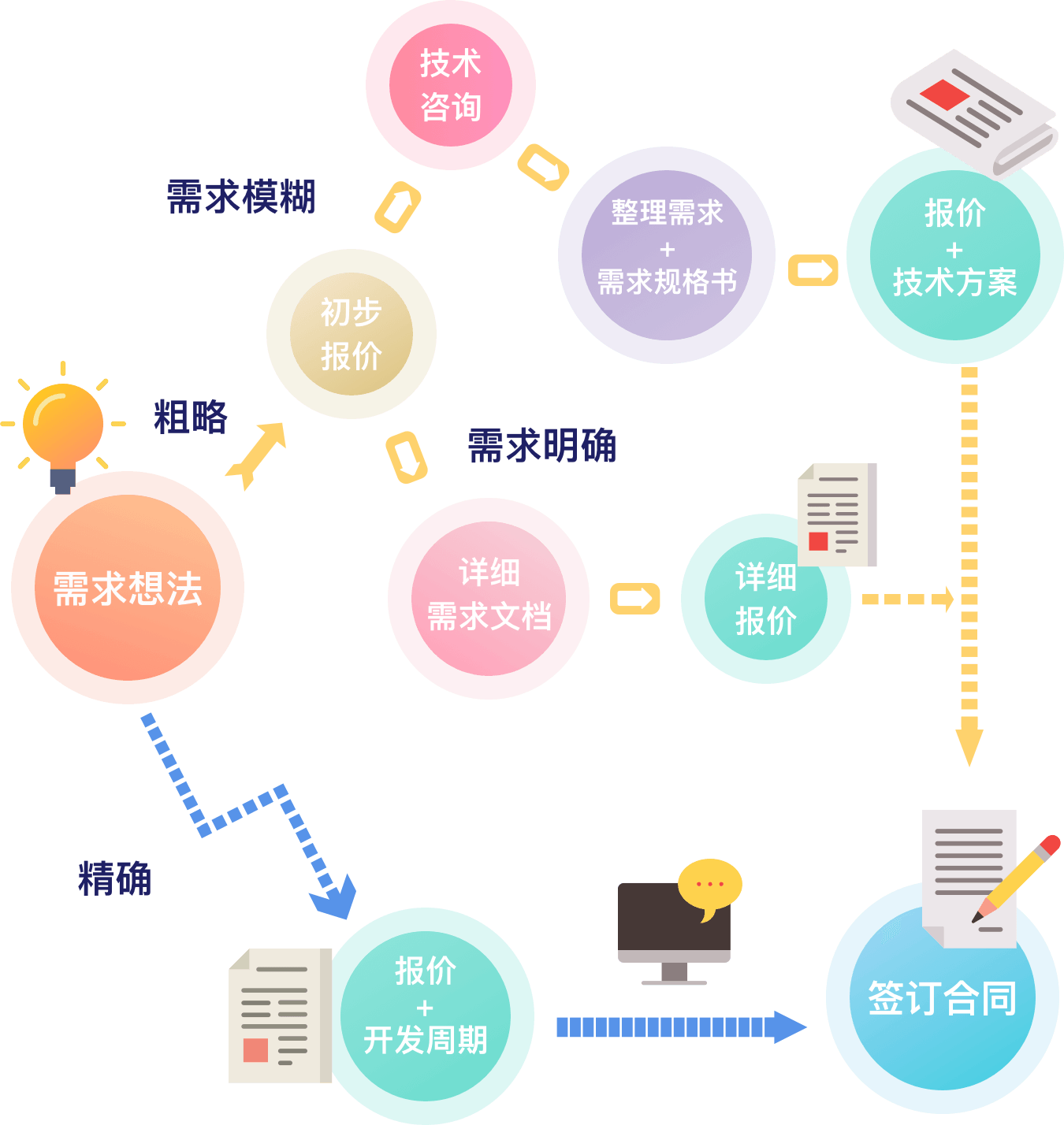 我们积极与客户沟通反馈,以便于让客户实时了解开发进度,通过不断的沟通反馈,从中发现问题并给予最佳的解决方案,让客户通过与我们的合作发挥其产品的最大值,并给其无限可能性。